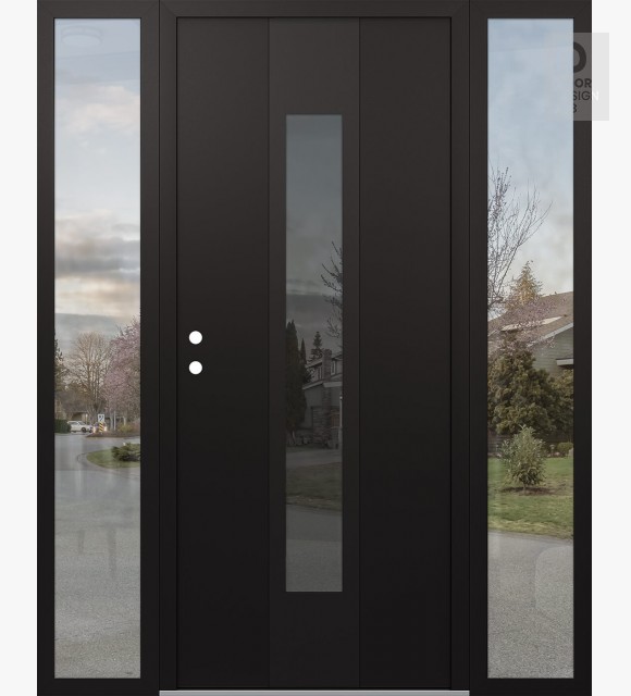 Modern Steel Front Door DIAMOND A1 64" X 80" BLACK/BLACK MIRRORED GLASS PANEL BLACK LHI WITH 2 SIDELITES CLEAR GLASS