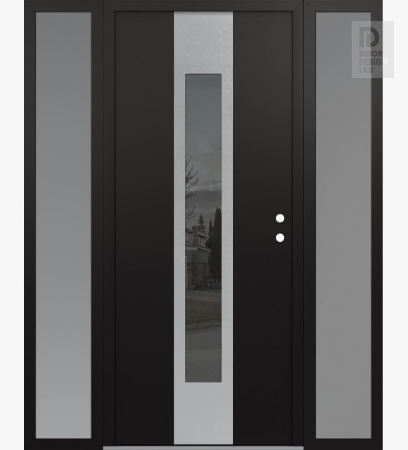 Modern Steel Front Door DIAMOND A1 64" X 80" BLACK/BLACK MIRRORED GLASS PANEL STAINLESS STEEL RHI WITH 2 SIDELITES FROSTED GLASS