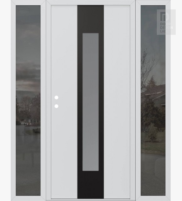 Modern Steel Front Door DIAMOND A1 64" X 80" BLACK/WHITE FROSTED GLASS PANEL BLACK LHI WITH 2 SIDELITES MIRRORED GLASS