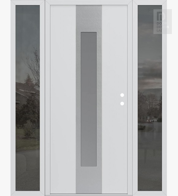 Modern Steel Front Door DIAMOND A1 64" X 80" BLACK/WHITE FROSTED GLASS PANEL STAINLESS STEEL RHI WITH 2 SIDELITES MIRRORED GLASS