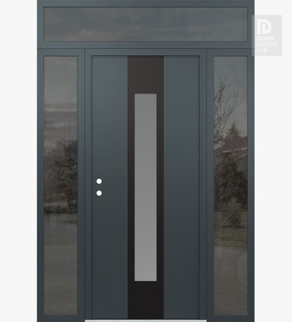 Modern Steel Front Door DIAMOND A1 64" X 96" ANTHRACITE/ANTHRACITE FROSTED GLASS PANEL BLACK LHI WITH 2 SIDELITES AND TRANSOM MIRRORED GLASS