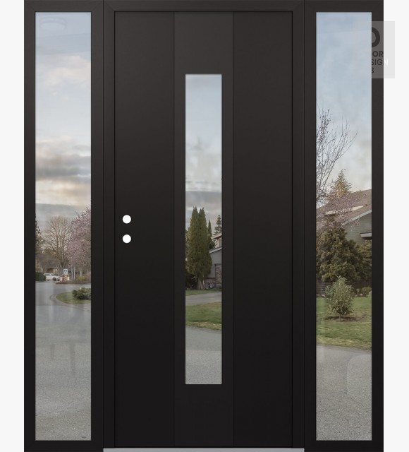 Modern Steel Front Door DIAMOND A1 68" X 80" BLACK/BLACK CLEAR GLASS PANEL BLACK LHI WITH 2 SIDELITES CLEAR GLASS
