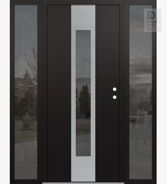 Modern Steel Front Door DIAMOND A1 68" X 80" BLACK/BLACK MIRRORED GLASS PANEL STAINLESS STEEL RHI WITH 2 SIDELITES MIRRORED GLASS