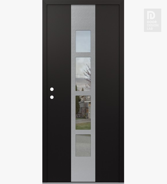 Modern Steel Front Door DIAMOND A10 36" X 80" BLACK/BLACK CLEAR GLASS PANEL STAINLESS STEEL LHI