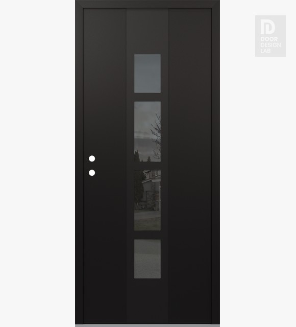 Modern Steel Front Door DIAMOND A10 36" X 80" BLACK/BLACK MIRRORED GLASS PANEL BLACK LHI