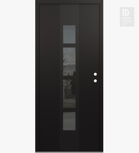 Modern Steel Front Door DIAMOND A10 36" X 80" BLACK/BLACK MIRRORED GLASS PANEL BLACK RHI