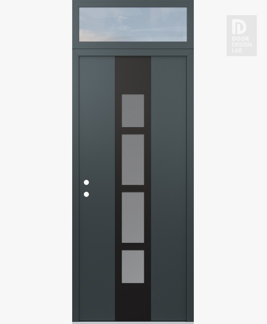 Modern Steel Front Door DIAMOND A10 36" X 96" ANTHRACITE/ANTHRACITE FROSTED GLASS PANEL BLACK LHI WITH TRANSOM CLEAR GLASS