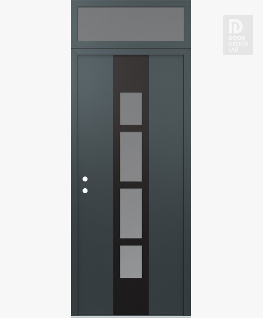 Modern Steel Front Door DIAMOND A10 36" X 96" ANTHRACITE/ANTHRACITE FROSTED GLASS PANEL BLACK LHI WITH TRANSOM FROSTED GLASS