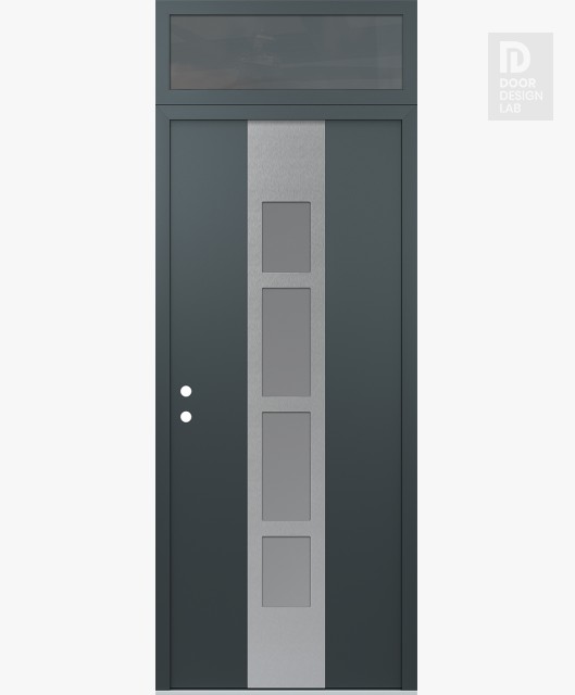 Modern Steel Front Door DIAMOND A10 36" X 96" ANTHRACITE/ANTHRACITE FROSTED GLASS PANEL STAINLESS STEEL LHI WITH TRANSOM MIRRORED GLASS