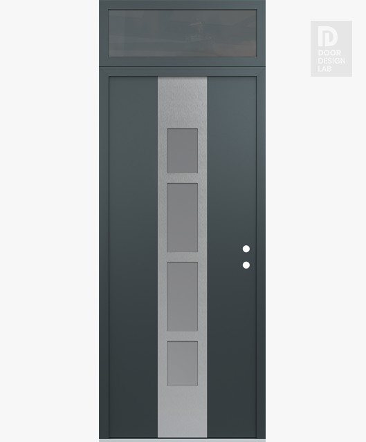Modern Steel Front Door DIAMOND A10 36" X 96" ANTHRACITE/ANTHRACITE FROSTED GLASS PANEL STAINLESS STEEL RHI WITH TRANSOM MIRRORED GLASS