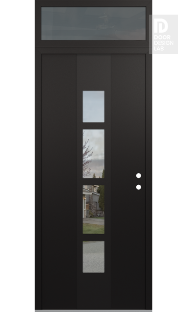 Modern Steel Front Door DIAMOND A10 36" X 96" BLACK/BLACK CLEAR GLASS PANEL BLACK RHI WITH TRANSOM MIRRORED GLASS