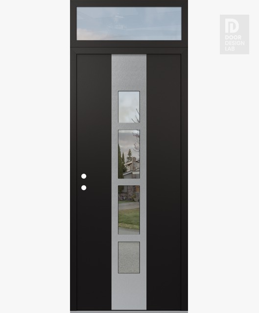 Modern Steel Front Door DIAMOND A10 36" X 96" BLACK/BLACK CLEAR GLASS PANEL STAINLESS STEEL LHI WITH TRANSOM CLEAR GLASS