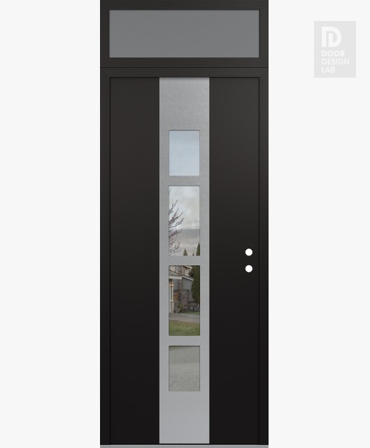 Modern Steel Front Door DIAMOND A10 36" X 96" BLACK/BLACK CLEAR GLASS PANEL STAINLESS STEEL RHI WITH TRANSOM FROSTED GLASS