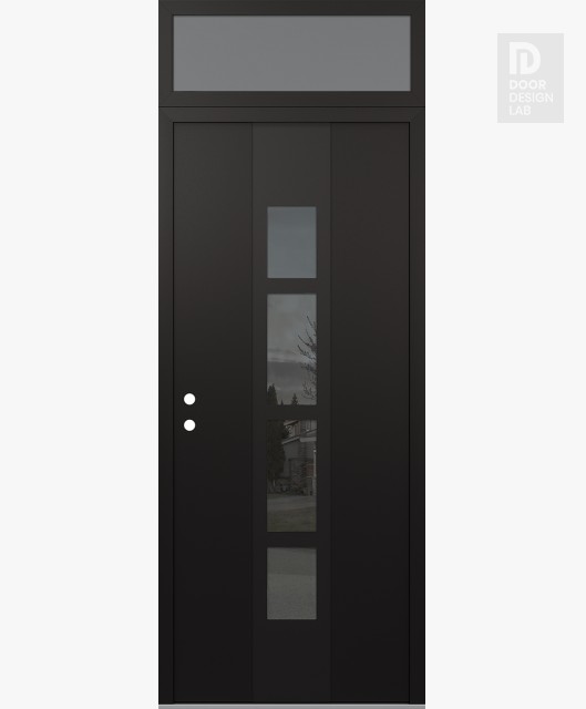 Modern Steel Front Door DIAMOND A10 36" X 96" BLACK/BLACK MIRRORED GLASS PANEL BLACK LHI WITH TRANSOM FROSTED GLASS