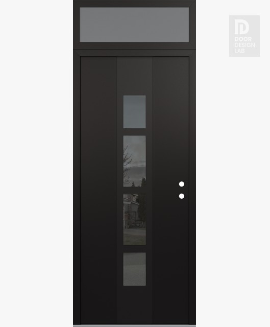 Modern Steel Front Door DIAMOND A10 36" X 96" BLACK/BLACK MIRRORED GLASS PANEL BLACK RHI WITH TRANSOM FROSTED GLASS
