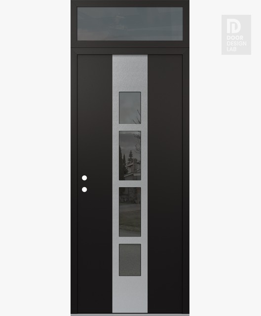Modern Steel Front Door DIAMOND A10 36" X 96" BLACK/BLACK MIRRORED GLASS PANEL STAINLESS STEEL LHI WITH TRANSOM MIRRORED GLASS