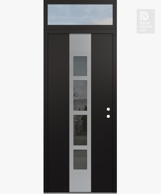 Modern Steel Front Door DIAMOND A10 36" X 96" BLACK/BLACK MIRRORED GLASS PANEL STAINLESS STEEL RHI WITH TRANSOM CLEAR GLASS