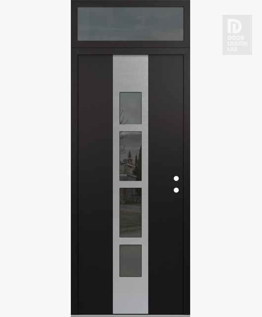 Modern Steel Front Door DIAMOND A10 36" X 96" BLACK/BLACK MIRRORED GLASS PANEL STAINLESS STEEL RHI WITH TRANSOM MIRRORED GLASS