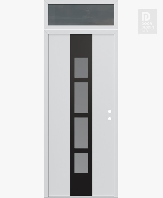 Modern Steel Front Door DIAMOND A10 36" X 96" BLACK/WHITE FROSTED GLASS PANEL BLACK RHI WITH TRANSOM MIRRORED GLASS