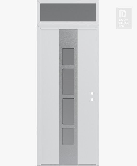 Modern Steel Front Door DIAMOND A10 36" X 96" BLACK/WHITE FROSTED GLASS PANEL STAINLESS STEEL RHI WITH TRANSOM FROSTED GLASS