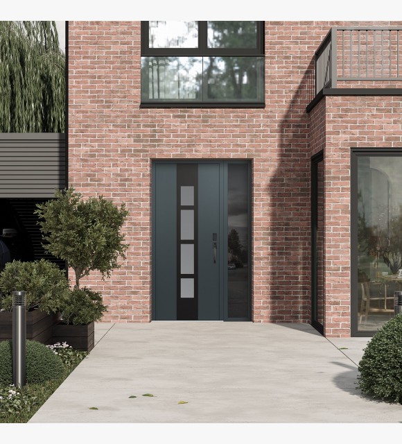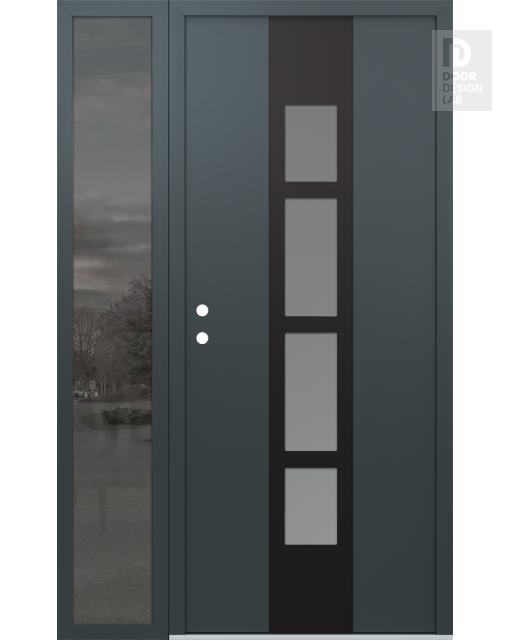 Modern Steel Front Door DIAMOND A10 48" X 80" ANTHRACITE/ANTHRACITE FROSTED GLASS PANEL BLACK LHI WITH SIDELITE MIRRORED GLASS
