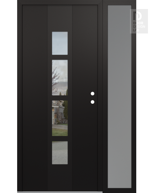 Modern Steel Front Door DIAMOND A10 48" X 80" BLACK/BLACK CLEAR GLASS PANEL BLACK RHI WITH SIDELITE FROSTED GLASS