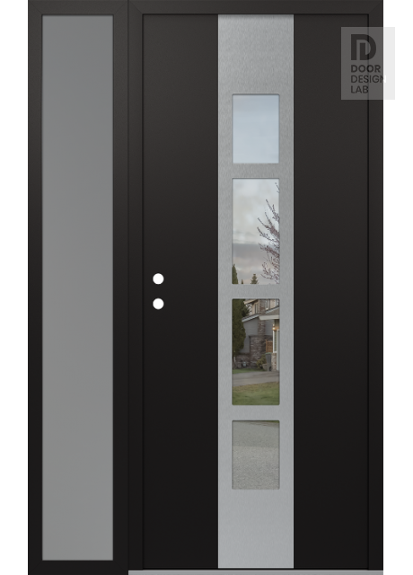Modern Steel Front Door DIAMOND A10 48" X 80" BLACK/BLACK CLEAR GLASS PANEL STAINLESS STEEL LHI WITH SIDELITE FROSTED GLASS