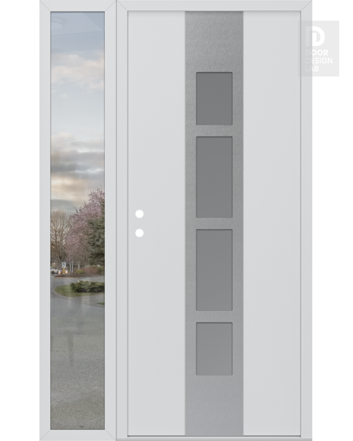 Modern Steel Front Door DIAMOND A10 48" X 80" BLACK/WHITE FROSTED GLASS PANEL STAINLESS STEEL LHI WITH SIDELITE CLEAR GLASS