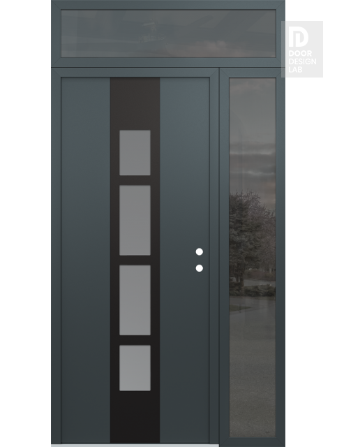Modern Steel Front Door DIAMOND A10 48" X 96" ANTHRACITE/ANTHRACITE FROSTED GLASS PANEL BLACK RHI WITH SIDELITE AND TRANSOM MIRRORED GLASS
