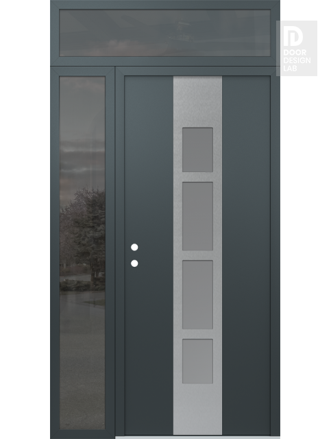 Modern Steel Front Door DIAMOND A10 48" X 96" ANTHRACITE/ANTHRACITE FROSTED GLASS PANEL STAINLESS STEEL LHI WITH SIDELITE AND TRANSOM MIRRORED GLASS