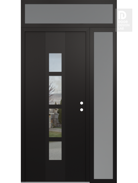 Modern Steel Front Door DIAMOND A10 48" X 96" BLACK/BLACK CLEAR GLASS PANEL BLACK RHI WITH SIDELITE AND TRANSOM FROSTED GLASS
