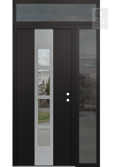 Modern Steel Front Door DIAMOND A10 48" X 96" BLACK/BLACK CLEAR GLASS PANEL STAINLESS STEEL RHI WITH SIDELITE AND TRANSOM MIRRORED GLASS