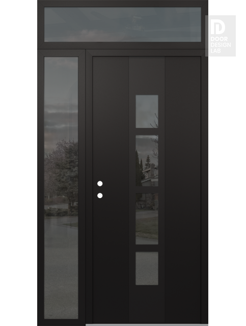 Modern Steel Front Door DIAMOND A10 48" X 96" BLACK/BLACK MIRRORED GLASS PANEL BLACK LHI WITH SIDELITE AND TRANSOM MIRRORED GLASS