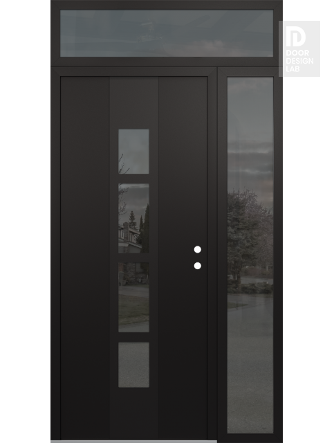 Modern Steel Front Door DIAMOND A10 48" X 96" BLACK/BLACK MIRRORED GLASS PANEL BLACK RHI WITH SIDELITE AND TRANSOM MIRRORED GLASS