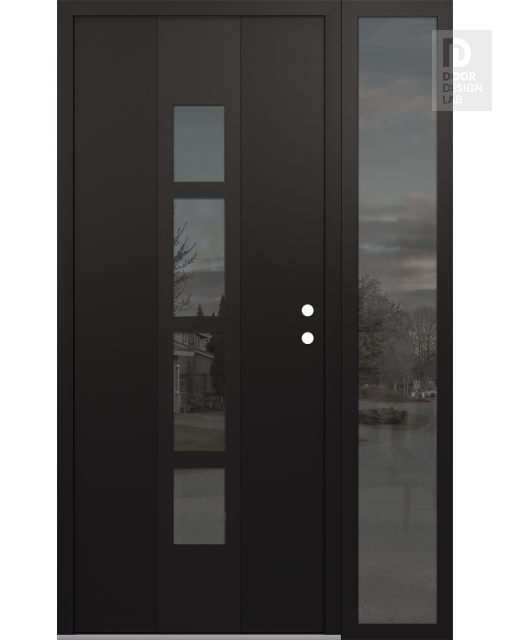 Modern Steel Front Door DIAMOND A10 50" X 80" BLACK/BLACK MIRRORED GLASS PANEL BLACK RHI WITH SIDELITE MIRRORED GLASS