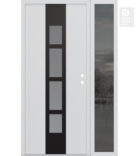 Modern Steel Front Door DIAMOND A10 50" X 80" BLACK/WHITE FROSTED GLASS PANEL BLACK RHI WITH SIDELITE MIRRORED GLASS