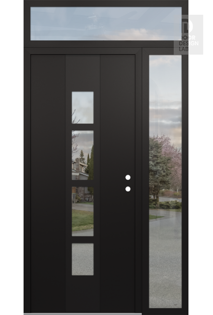 Modern Steel Front Door DIAMOND A10 50" X 96" BLACK/BLACK CLEAR GLASS PANEL BLACK RHI WITH SIDELITE AND TRANSOM CLEAR GLASS