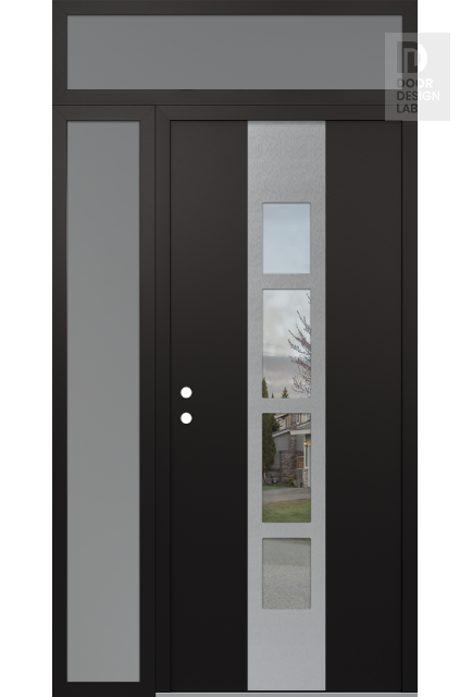 Modern Steel Front Door DIAMOND A10 50" X 96" BLACK/BLACK CLEAR GLASS PANEL STAINLESS STEEL LHI WITH SIDELITE AND TRANSOM FROSTED GLASS