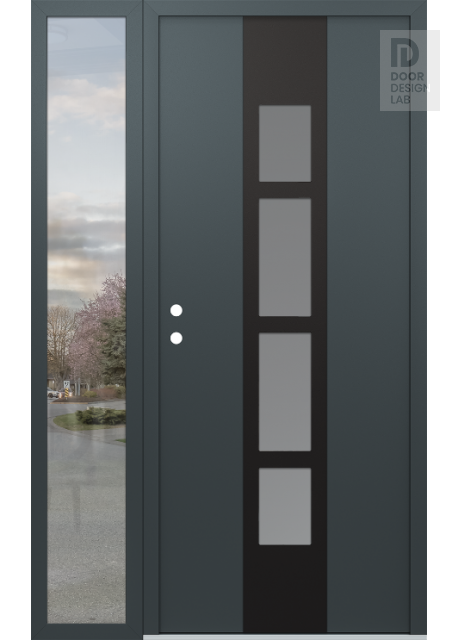 Modern Steel Front Door DIAMOND A10 52" X 80" ANTHRACITE/ANTHRACITE FROSTED GLASS PANEL BLACK LHI WITH SIDELITE CLEAR GLASS