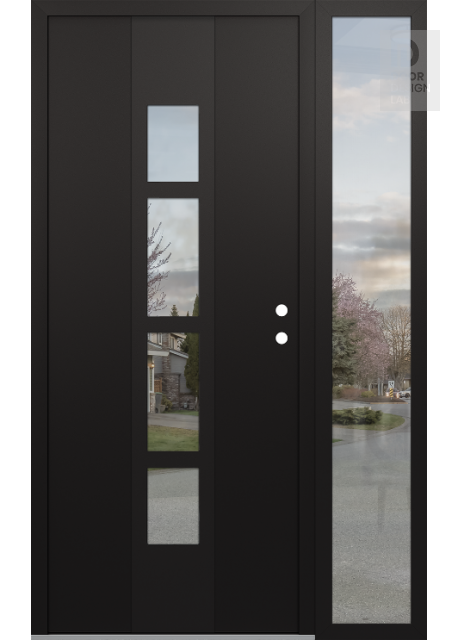 Modern Steel Front Door DIAMOND A10 52" X 80" BLACK/BLACK CLEAR GLASS PANEL BLACK RHI WITH SIDELITE CLEAR GLASS