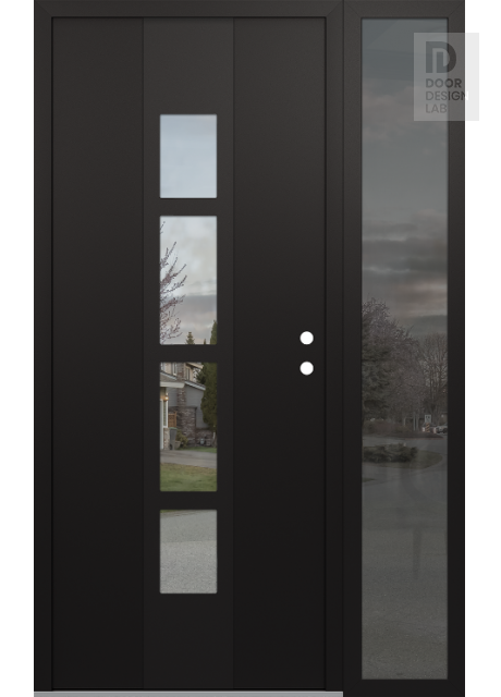 Modern Steel Front Door DIAMOND A10 52" X 80" BLACK/BLACK CLEAR GLASS PANEL BLACK RHI WITH SIDELITE MIRRORED GLASS