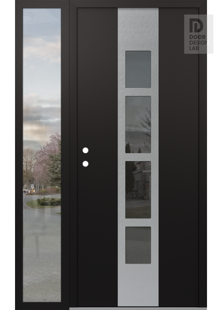 Modern Steel Front Door DIAMOND A10 52" X 80" BLACK/BLACK MIRRORED GLASS PANEL STAINLESS STEEL LHI WITH SIDELITE CLEAR GLASS