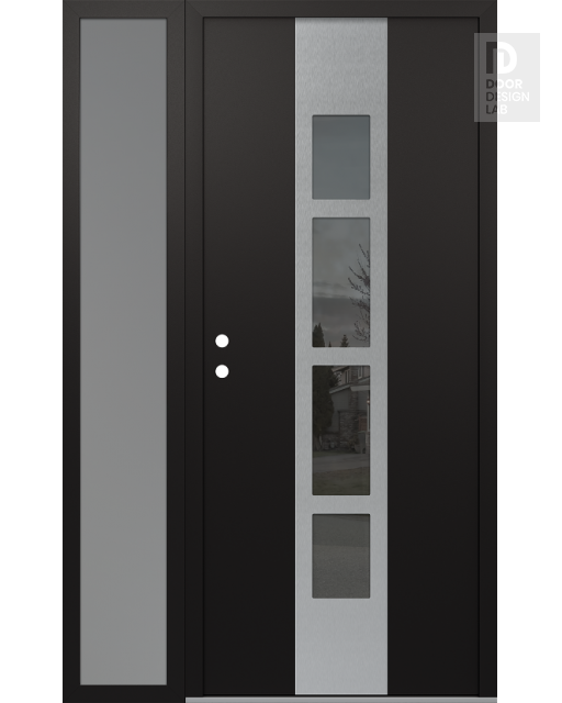 Modern Steel Front Door DIAMOND A10 52" X 80" BLACK/BLACK MIRRORED GLASS PANEL STAINLESS STEEL LHI WITH SIDELITE FROSTED GLASS