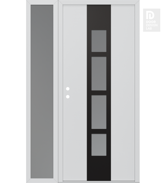 Modern Steel Front Door DIAMOND A10 52" X 80" BLACK/WHITE FROSTED GLASS PANEL BLACK LHI WITH SIDELITE FROSTED GLASS