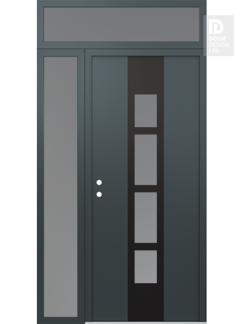 Modern Steel Front Door DIAMOND A10 52" X 96" ANTHRACITE/ANTHRACITE FROSTED GLASS PANEL BLACK LHI WITH SIDELITE AND TRANSOM FROSTED GLASS