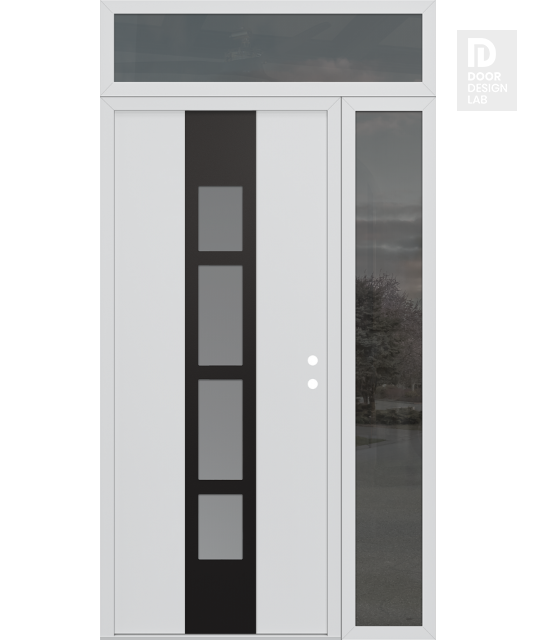 Modern Steel Front Door DIAMOND A10 52" X 96" BLACK/WHITE FROSTED GLASS PANEL BLACK RHI WITH SIDELITE AND TRANSOM MIRRORED GLASS