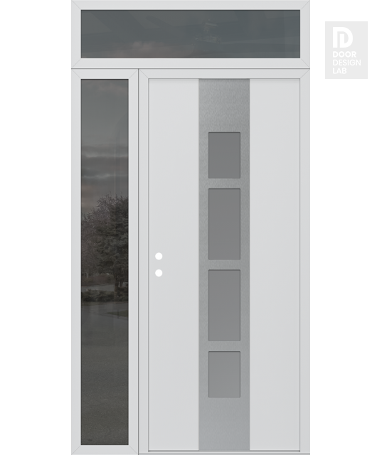 Modern Steel Front Door DIAMOND A10 52" X 96" BLACK/WHITE FROSTED GLASS PANEL STAINLESS STEEL LHI WITH SIDELITE AND TRANSOM MIRRORED GLASS