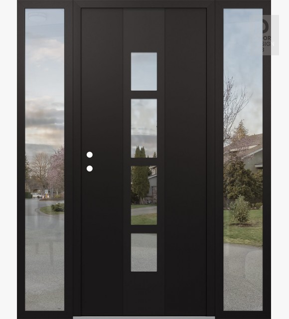 Modern Steel Front Door DIAMOND A10 60" X 80" BLACK/BLACK CLEAR GLASS PANEL BLACK LHI WITH 2 SIDELITES CLEAR GLASS