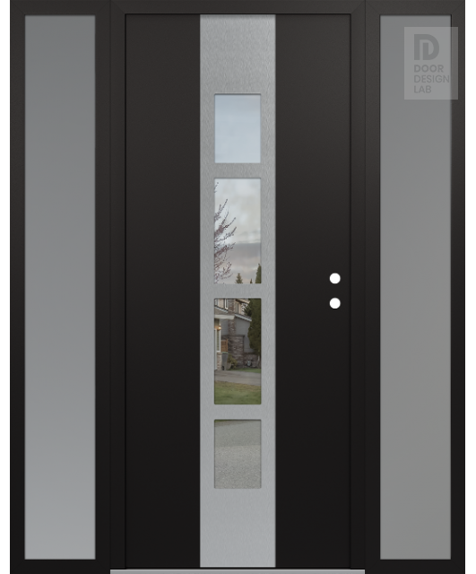 Modern Steel Front Door DIAMOND A10 60" X 80" BLACK/BLACK CLEAR GLASS PANEL STAINLESS STEEL RHI WITH 2 SIDELITES FROSTED GLASS
