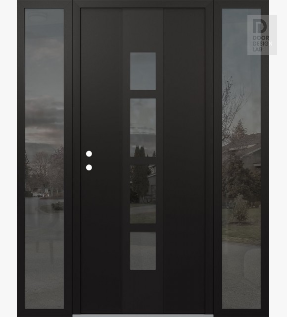 Modern Steel Front Door DIAMOND A10 60" X 80" BLACK/BLACK MIRRORED GLASS PANEL BLACK LHI WITH 2 SIDELITES MIRRORED GLASS